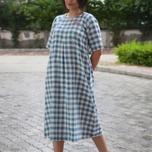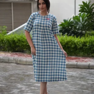 Be the first to review “Straight-Fit Handwoven Cotton Blue And White Checkered Dress”