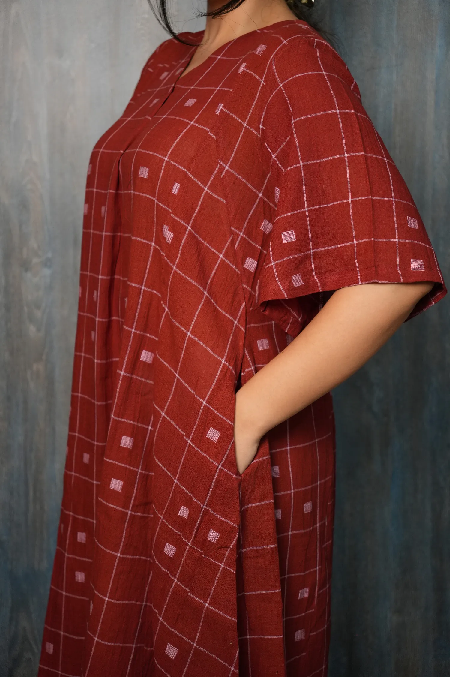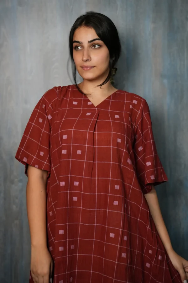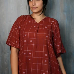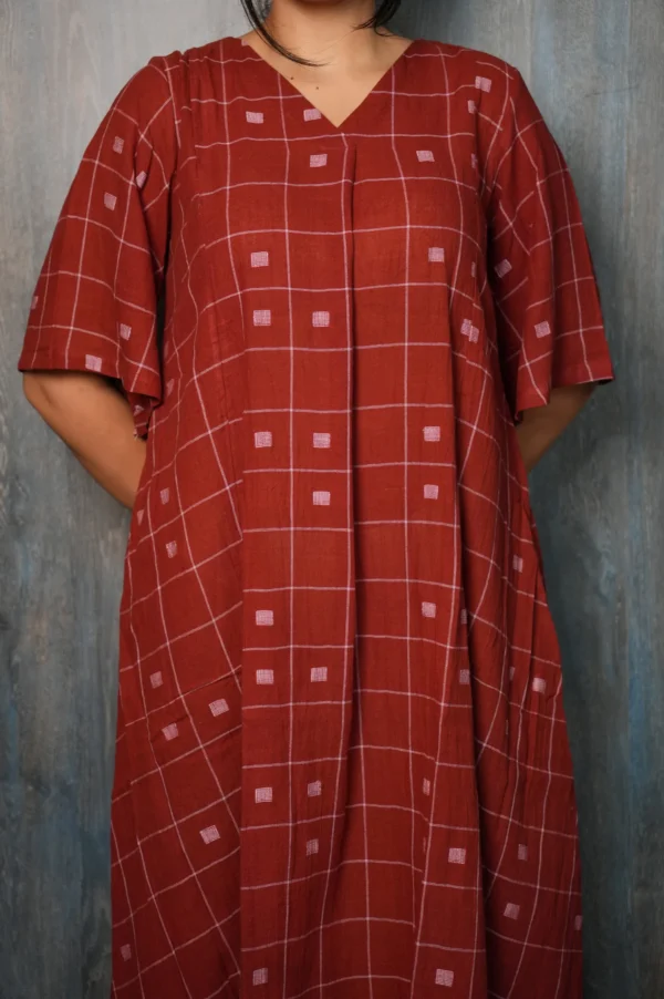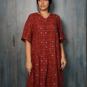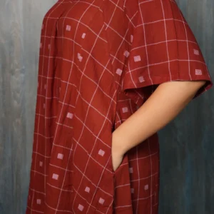 Be the first to review “Straight-Fit Handwoven Red Cotton Dress”